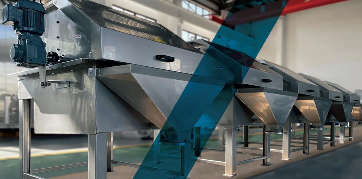 The captured solids are conveyed to discharge, leaving screened effluent ready for downstream treatment.