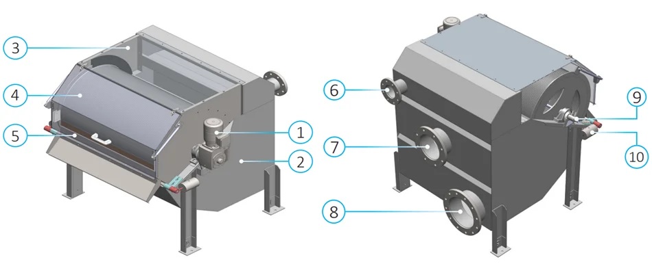 It is an externally fed rotary drum screen designed to provide efficient and reliable solids separation in a wide range of wastewater treatment applications.