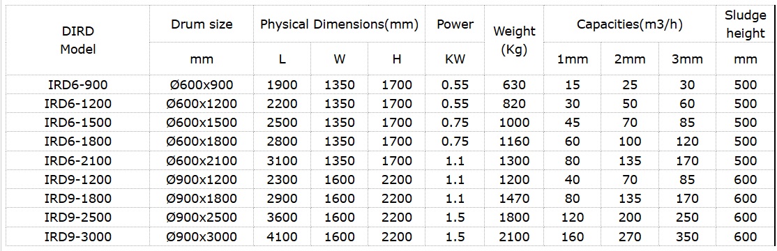 The raw water is fed in the internal rotating surface of the screen. Solids remain on the surface of the screen while the liquid goes through the screen. As the screening cylinder rotates, the solids drop off one diverter flight to the next until they reach the discharge. A spraying/backwash system located on the upper half of the unit, will wash off any solids, grease or other materials sticking to the face of the screen and keep the perforation clean.