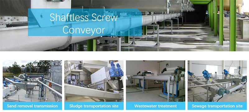 Shaftless is suitable for conveying sludge, household garbage, grid slag and other viscous, entangled materials and massive materials.